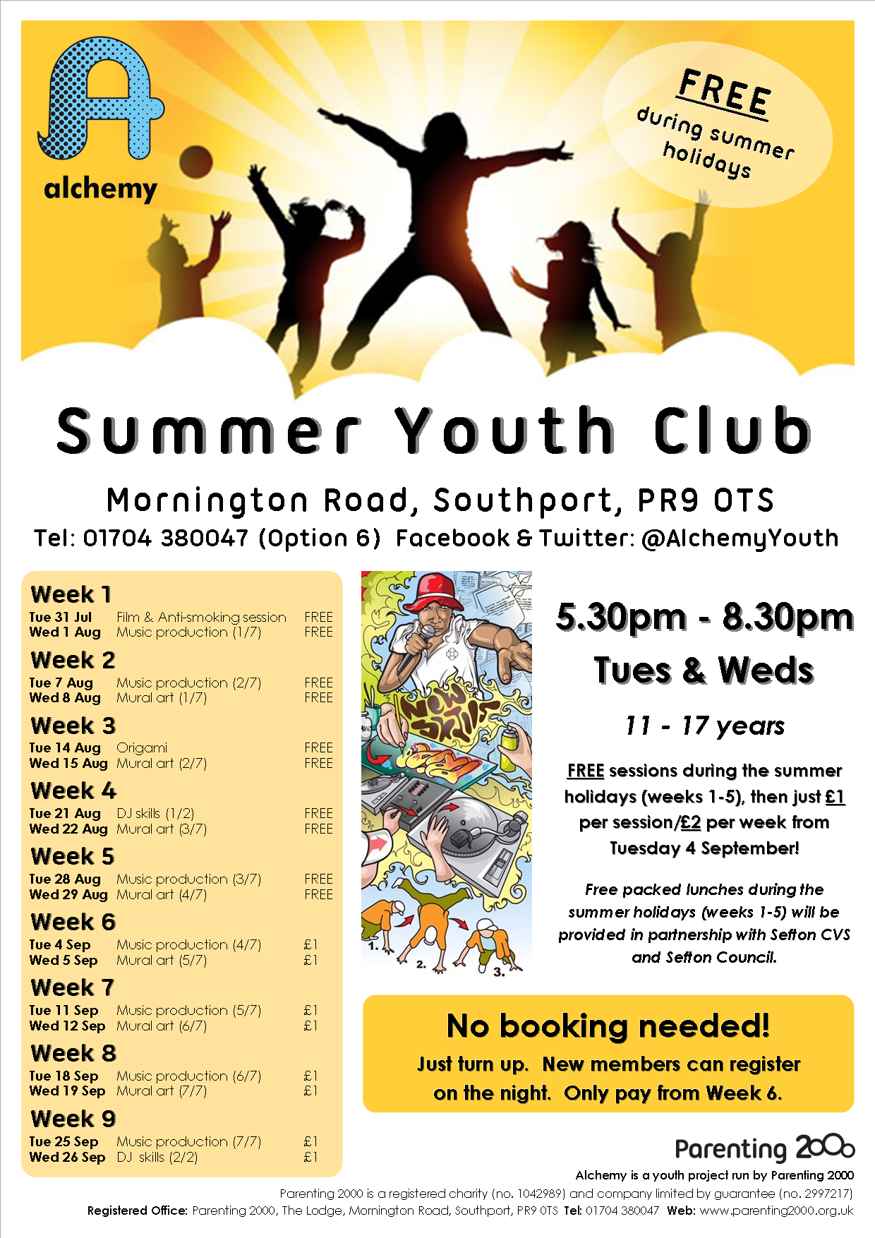 Music production sessions, graffiti art, origami activities and DJ skills throughout the summer holidays and until the end of September.