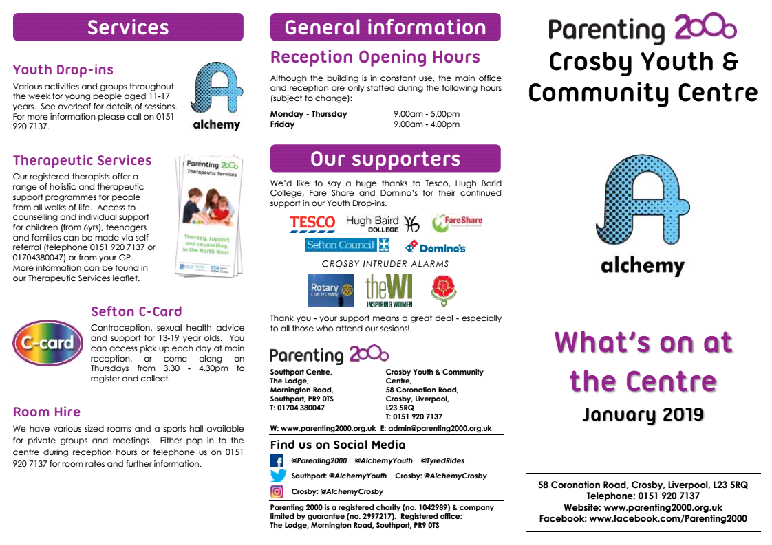 What’s on at our Crosby Centre from January 2019 06/02/2019 / Parenting 2000 Take a look at what we’ve got running from our Centre in Crosby. What’s on Leaflet (Crosby) – January 2019Download Share this: Click to share on Facebook (Opens in new window) Facebook Click to share on X (Opens in new window) X Click to share on X (Opens in new window) X Click to share on Bluesky (Opens in new window) Bluesky Click to share on WhatsApp (Opens in new window) WhatsApp Click to share on LinkedIn (Opens in new window) LinkedIn Click to email a link to a friend (Opens in new window) Email Like Loading...