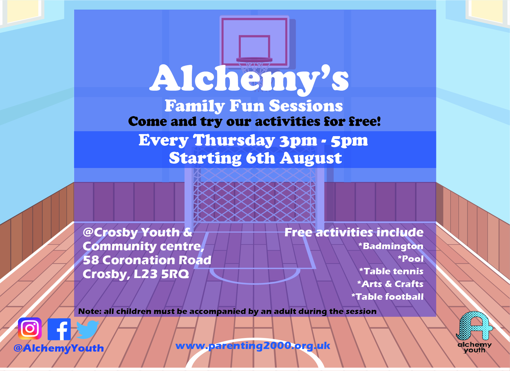 Family Fun Sessions at Alchemy Crosby 23/07/202012/10/2020 / Robert Aughton Every Thursday between 3pm and 5pm, starting 6 August. No need to book – just turn up! Cold drinks will be available. Children and young people have to be accompanied by an adult who is over 18. Share this: Share on Facebook (Opens in new window) Facebook Share on X (Opens in new window) X Share on X (Opens in new window) X Share on Bluesky (Opens in new window) Bluesky Share on WhatsApp (Opens in new window) WhatsApp Share on LinkedIn (Opens in new window) LinkedIn Email a link to a friend (Opens in new window) Email Like Loading...