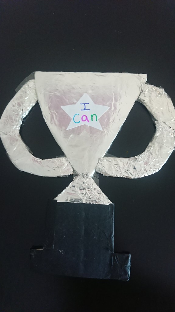 Amie was amazing! This is her trophy that she made, to remind herself that “she can” and “she will”…